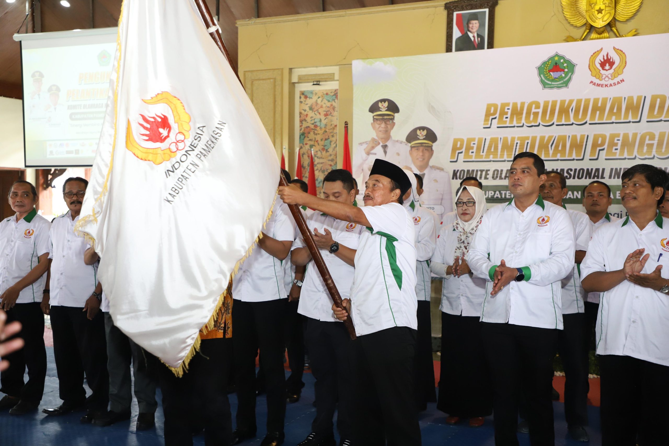 KONI PAMEKASAN – Kepengurusan baru Komite Olahraga Nasional Indonesia (KONI) Kabupaten Pamekasan periode 2025–2029 langsung memasang target ambisius. Pasca pelantikan di Mandhapa Aghung Ronggosukowati, Kamis (8/1/2026), Ketua KONI Pamekasan Faruk Ali menegaskan tekad membawa Pamekasan menembus 10 besar Porprov Jawa Timur mendatang.